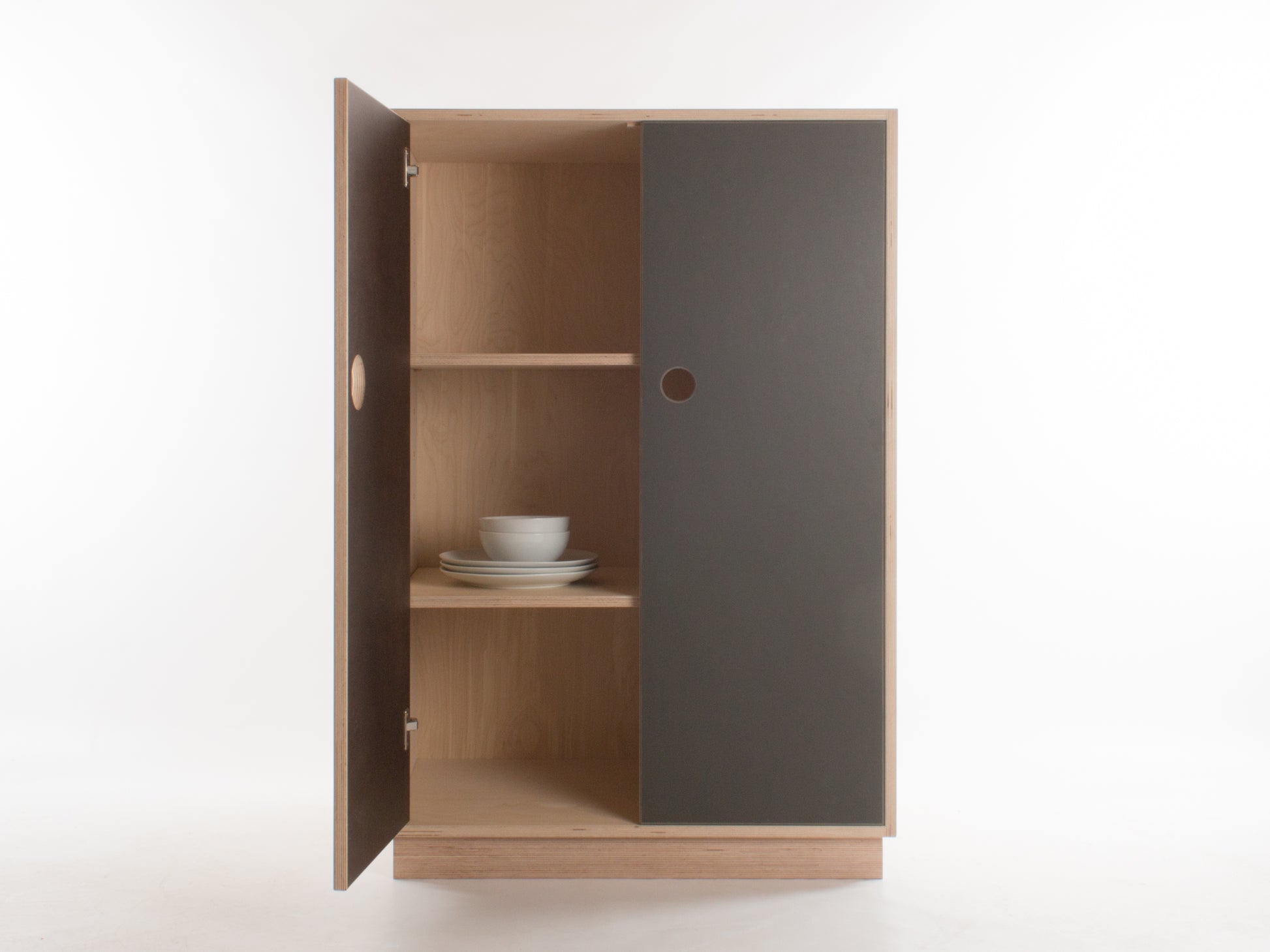 Osaka cabinets are free-standing storage units that offer simple, essentialist style while providing roomy storage. Designed with two adjustable shelves, Osaka cabinets are available in different sizes to accommodate your storage needs.